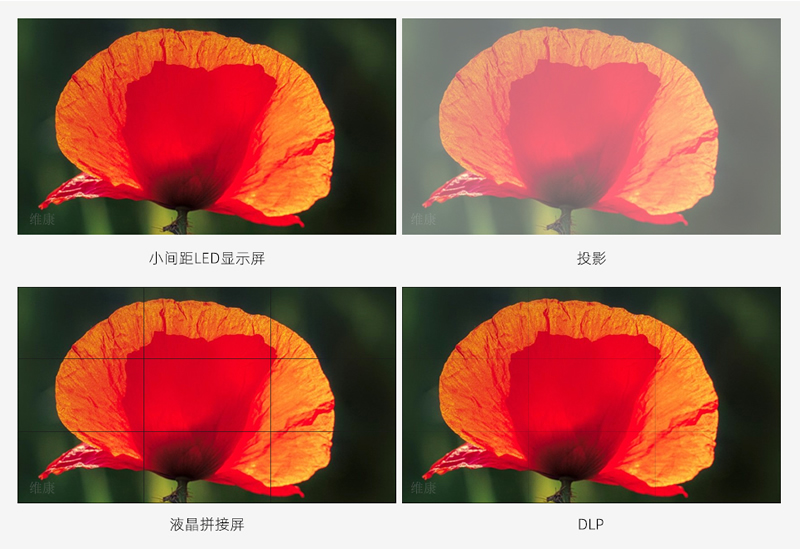 在显示时,不会像投影那样画面发白,也不会像液晶拼接屏和DLP大屏那样有拼接缝隙,整个屏幕的显示效果更佳。