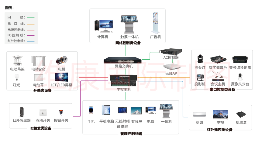 该系统可以根据不同的展示场景和活动需求,预设多种场景模式进行设备联动,切换自如。